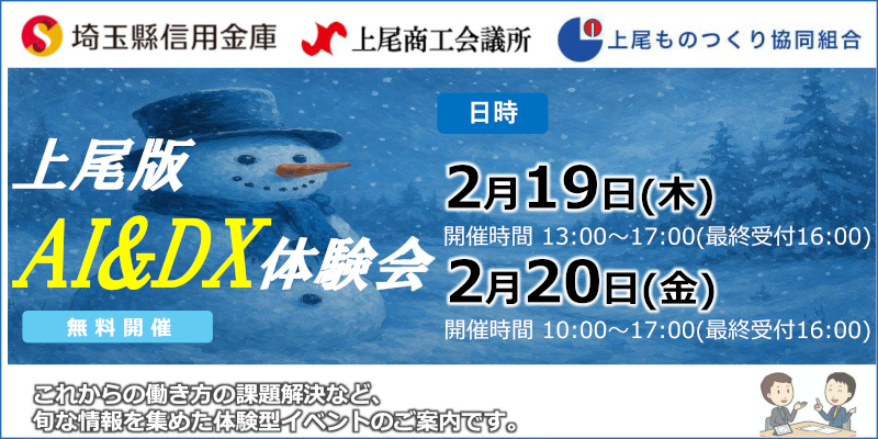 『上尾まちゼミ』に参加する会員店舗を募集します!【開催期間】令和8年2/14(土)~3/15(日) >>詳細 -