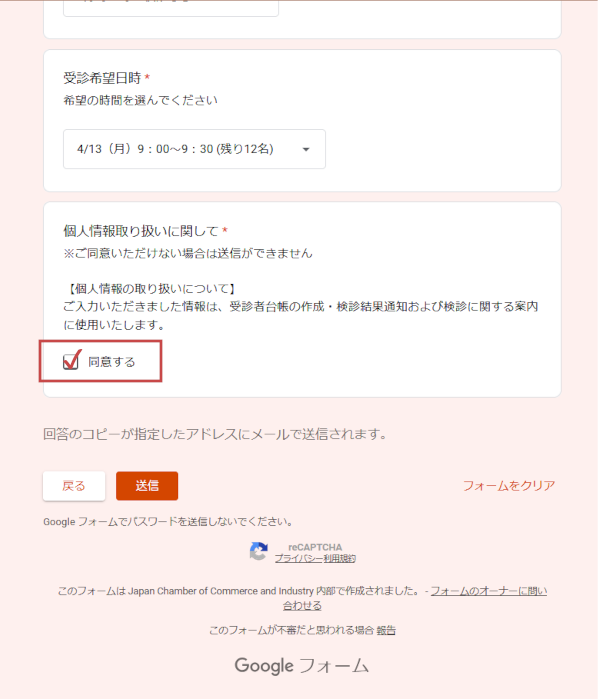 令和8年1/27(火)以降に上記に表示される「お申し込みフォーム」へのリンクバナーをクリックすると、以下のようなGoogleフォームが表示されます。