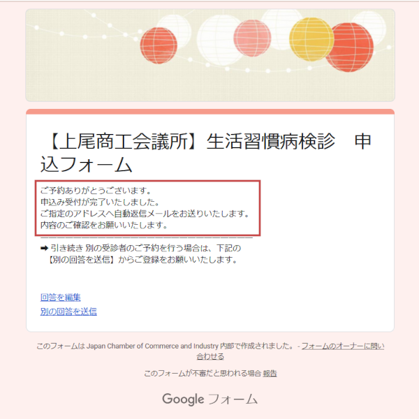 1名様の情報入力が完了した後、続けて別の方の分を入力する場合は、必ず「別の回答を送信」をクリックしてから次の方の情報を入力してください。 |